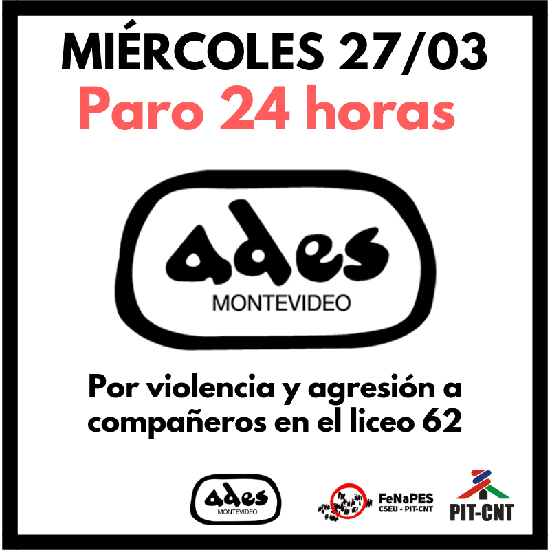 Adjuntamos comunicados: https://adesmontevideo.uy/nucleo-sindical-del-liceo-n-4-respalda-resolucion-de-el-del-liceo-n-3-y-se-mantendra-en-alerta/