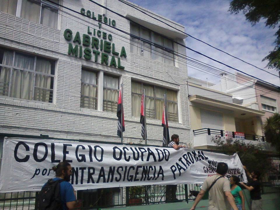 Los trabajadores del Colegio Gabriela Mistral afiliados a SINTEP, nos dirigimos a ustedes para comunicar que, a diez días de haber sido tomado bajo control de los trabajadores el edificio central de la institución sito en la calle Ámsterdam 1483, en el día de la fecha resolvimos suspender la medida.