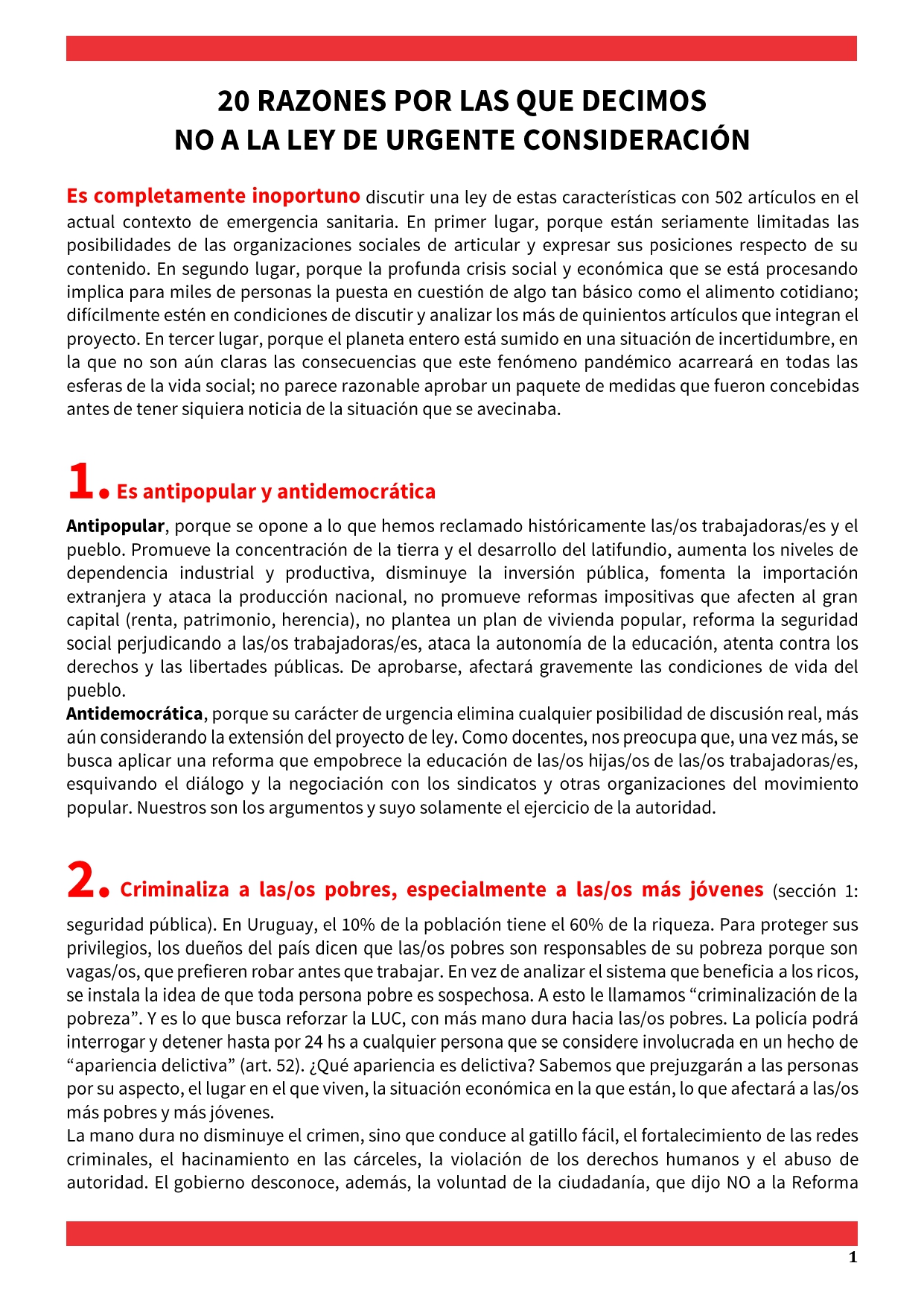 20 razones por las que decimos NO a la LUC