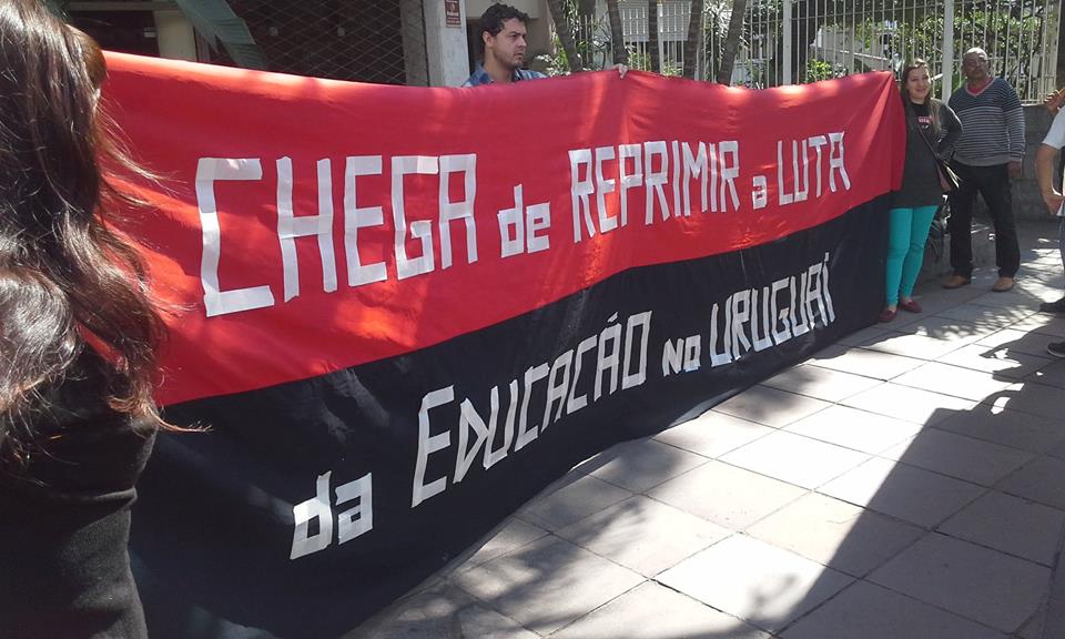 Hoje pela manhã, terça-feira (29/09) estivemos reunidos em frente ao Consulado Uruguaio, manifestando nossa Solidariedade aos(as) companheiros(as) – trabalhadores do taxi e da educação –