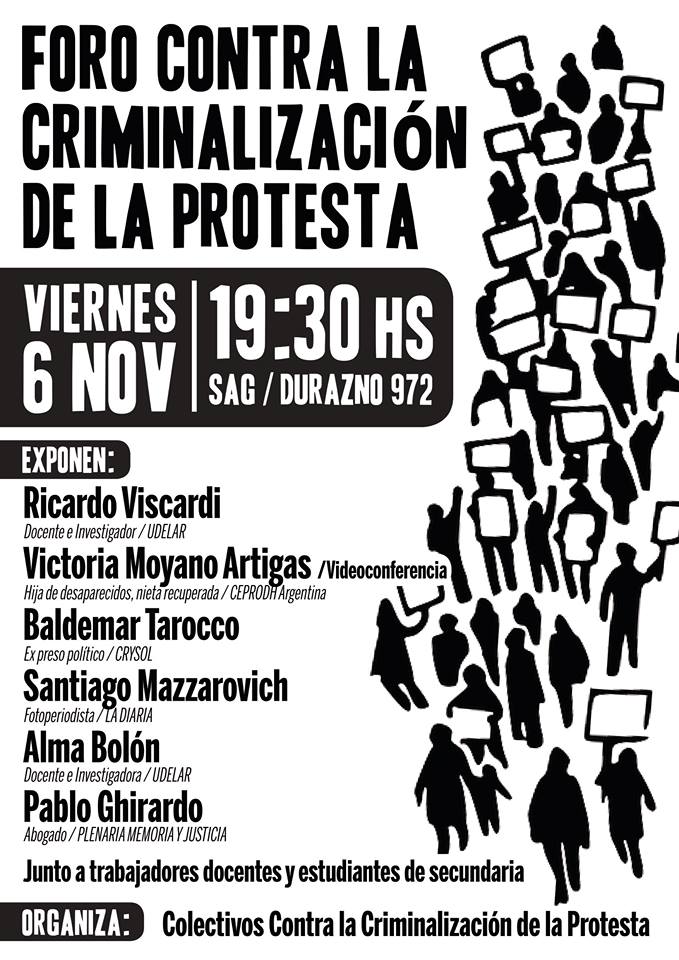 Comisión de Derechos Humanos Foro Contra la Criminalización de la Protesta: Viernes 6, Hora 19:30, Local del SAG noviembre 6, 2015