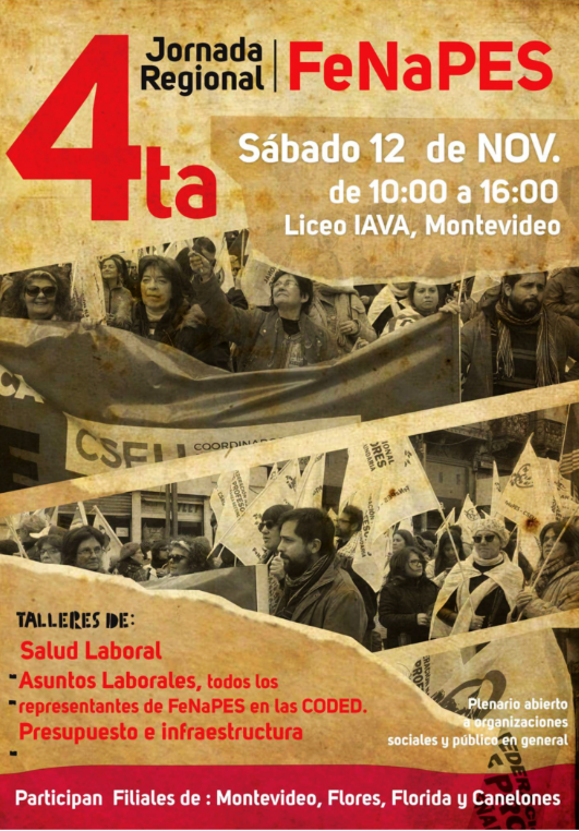 Formación Cuarta Jornada Regional de Formación de la FENAPES: Sábado 12, Hora 10, Local del IAVA noviembre 8, 2016