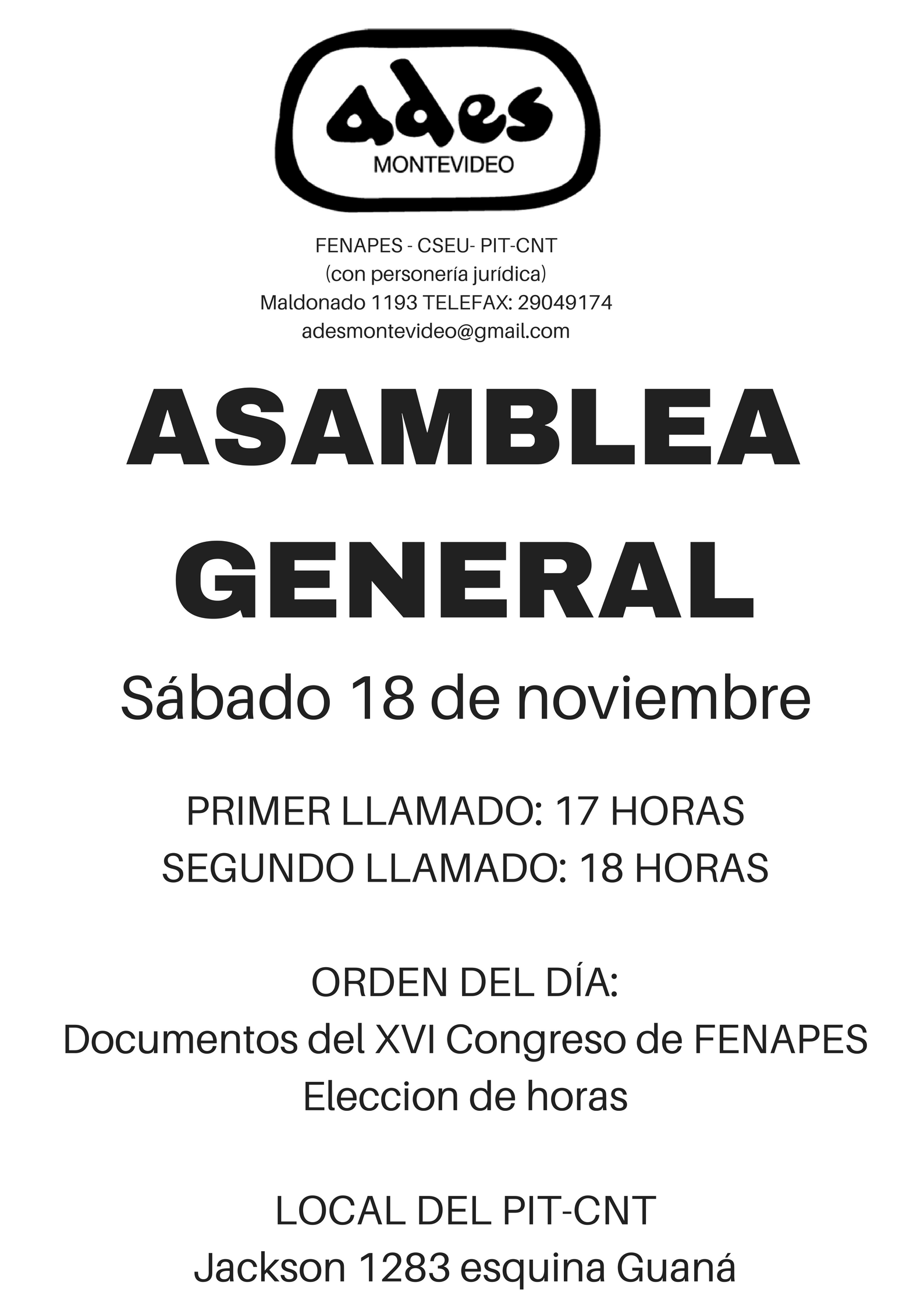 Montevideo, 13 de noviembre de 2017 Estimados compañeros de la directiva de ADES Montevideo: Tomando en cuenta las carencias en relación a los recursos humanos