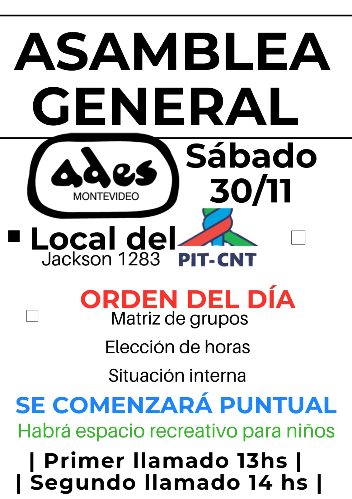 Comisiones ADES Sábado 30 de noviembre: reunión de la Comisión de Organización de ADES Montevideo noviembre 27, 2019
