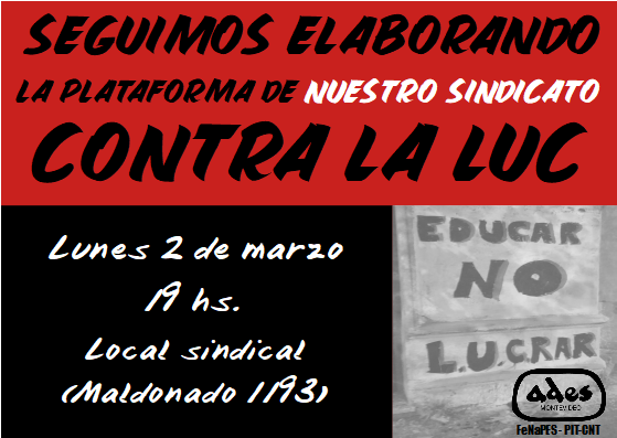 Comisiones ADES Lunes 2 de marzo: reunión de la Comisión sobre la LUC de ADES Montevideo febrero 29, 2020