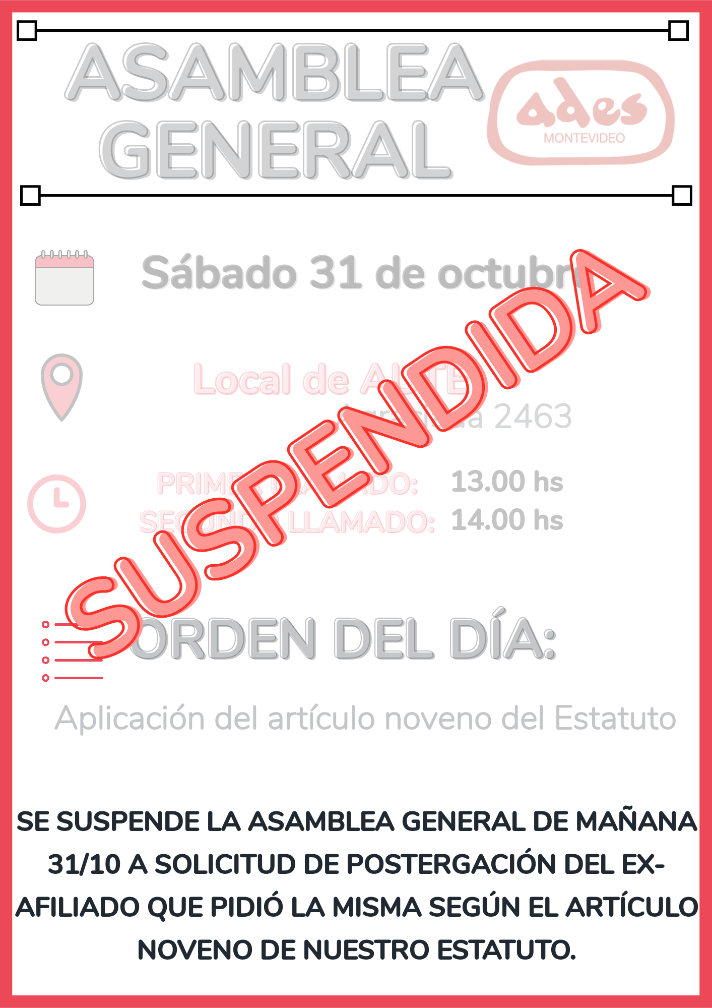 SUSPENDIDA: ASAMBLEA GENERAL 31-10-2020