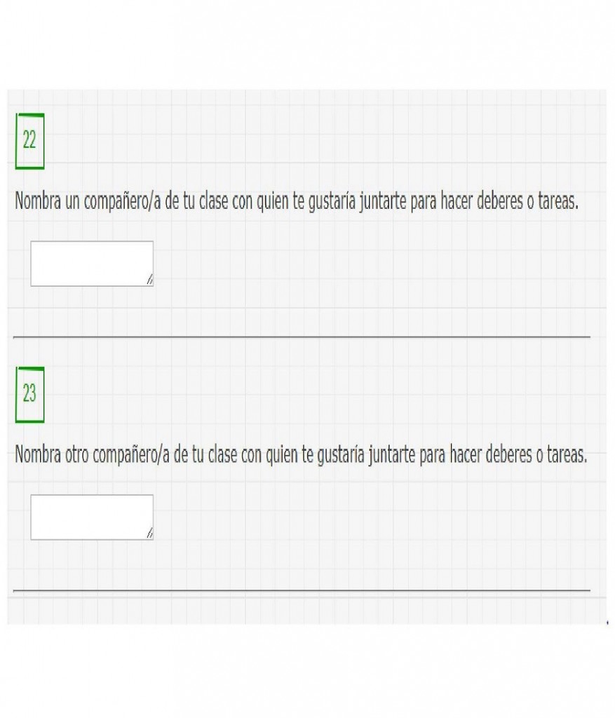 Segundo: se le solicitan al estudiante  dos nombres de compañeros con los cuales les gustaría realizar tareas o deberes. “Los estudiantes deben escribir un nombre por pregunta, siendo lo más específicos que puedan al hacerlo (nombre y apellido, si es posible)”. No queda muy claro cómo se espera que un estudiante identifique a los otros si no es con nombre y apellido, ni qué utilidad posee para los docentes saber -por ejemplo- que González quiere estudiar con “el tato”.
