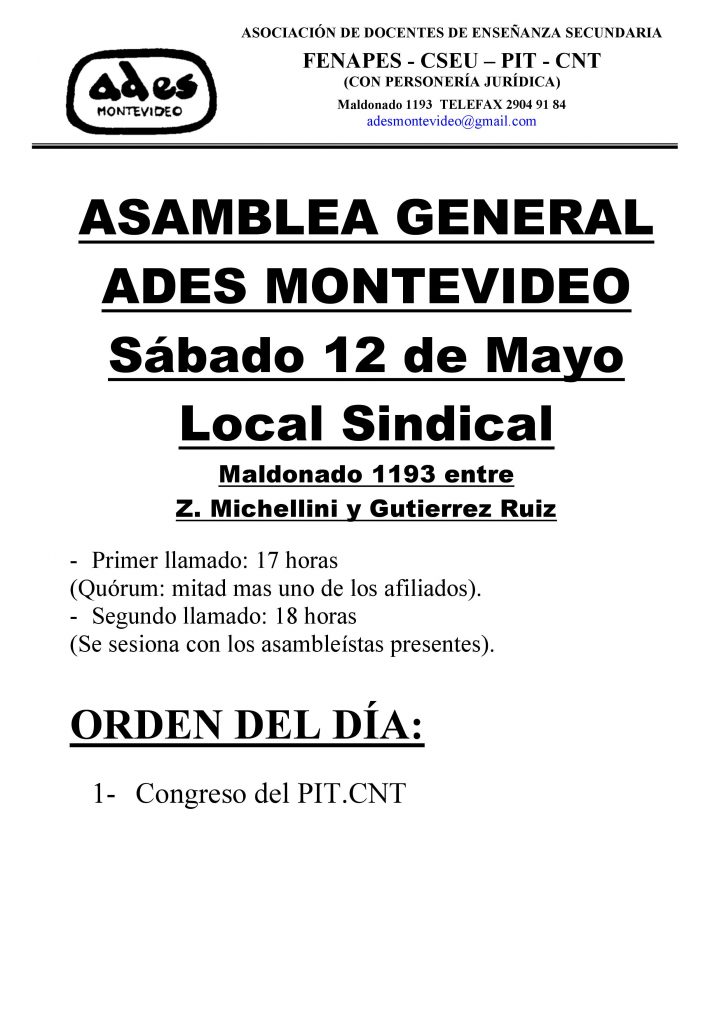 ASAMBLEA GENERAL JUEVES 23 DE ABRIL