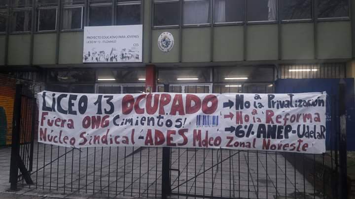 El Núcleo Sindical del Liceo N° 13, tras dos días de ocupación del Liceo, ha recibido como única respuesta del Consejo de Educación Secundaria que