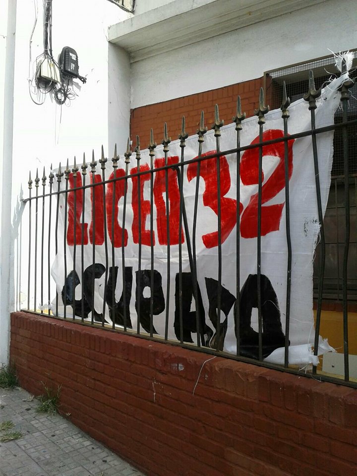 El núcleo sindical del liceo n° 32 reunido en paro y asamblea en apoyo a los reclamos presentados por los estudiantes, quienes realizaron paro, sentada