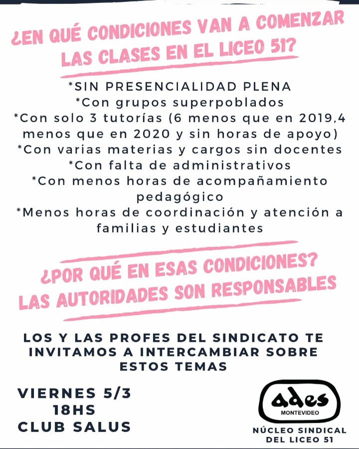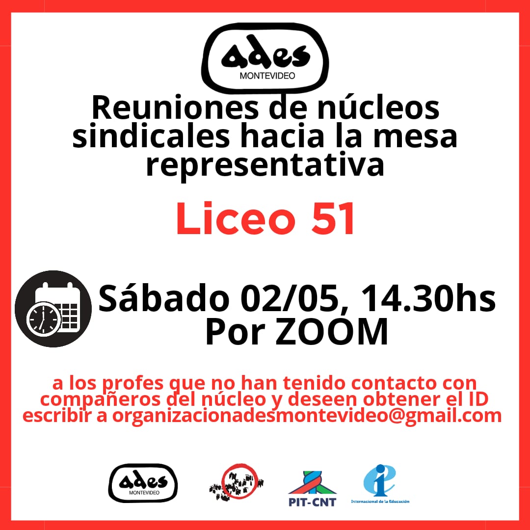 POR RESOLUCIÓN DE LA ASAMBLEA DE ADES MONTEVIDEO DEL DÍA 17 DE MARZO: Moción Nº 10 Exhortar a los núcleos liceales a reunirse para discutir