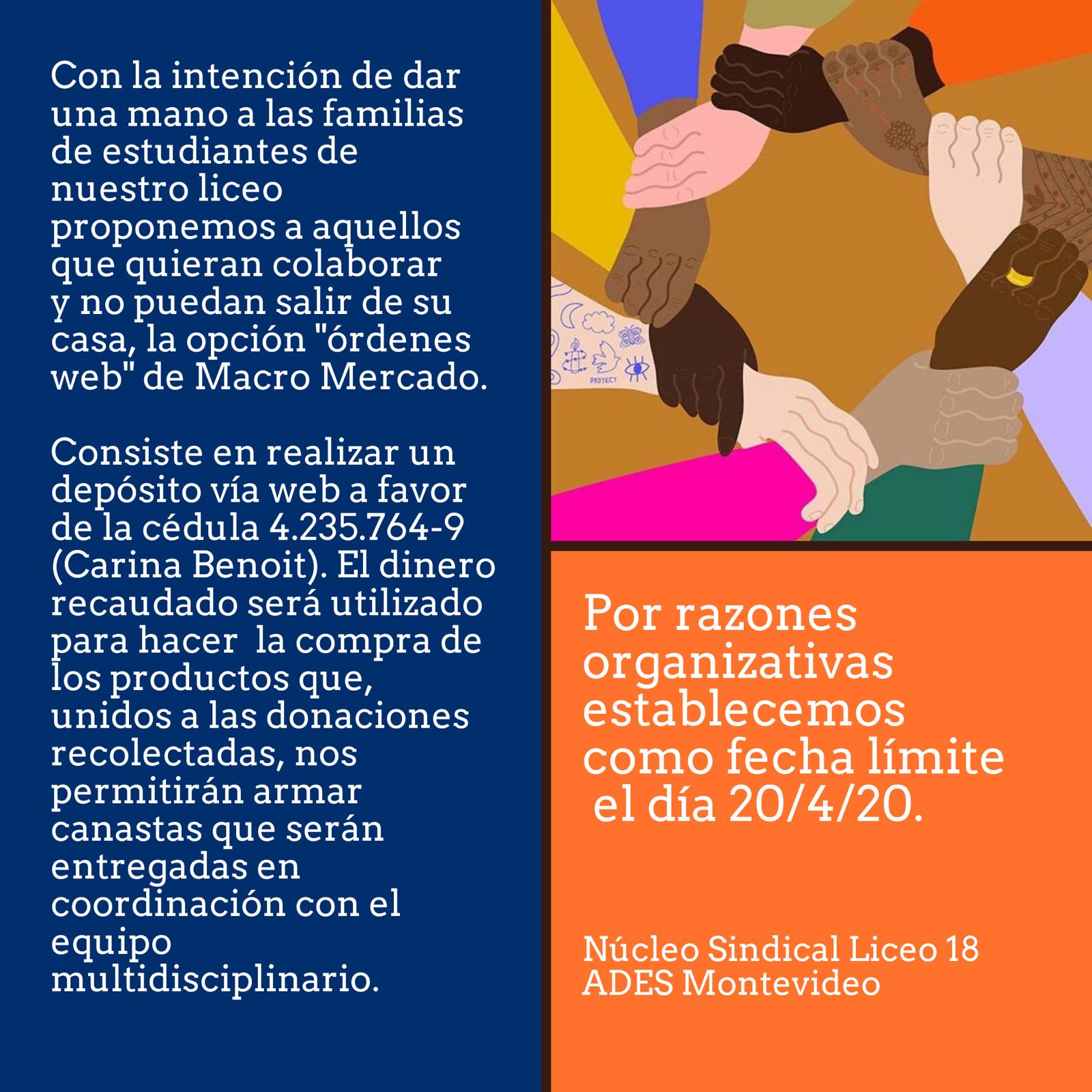 Montevideo, 23 de marzo de 2020. Estimados compañeros. En estos momentos, en donde las situaciones cotidianas de cientos de compañeros o vecinos son invisibilizadas por