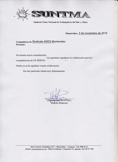 31 de octubre de 2017. Queridos compañeros de ADES, FeNaPES y ATES: Estoy escribiendo aún desde San Pablo, pero ya en una segunda etapa luego