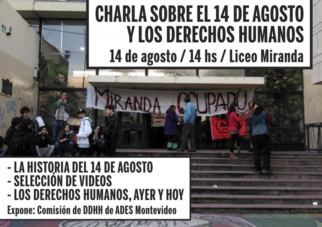Charla sobre el 14 de Agosto y los Derechos Humanos: Liceo Miranda, 14/08, 14 hs.