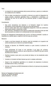 Comunicado del núcleo del 44 por agresión a dos docentes