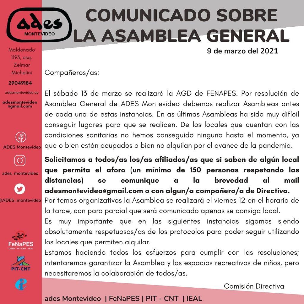 Comunicado sobre Asamblea general