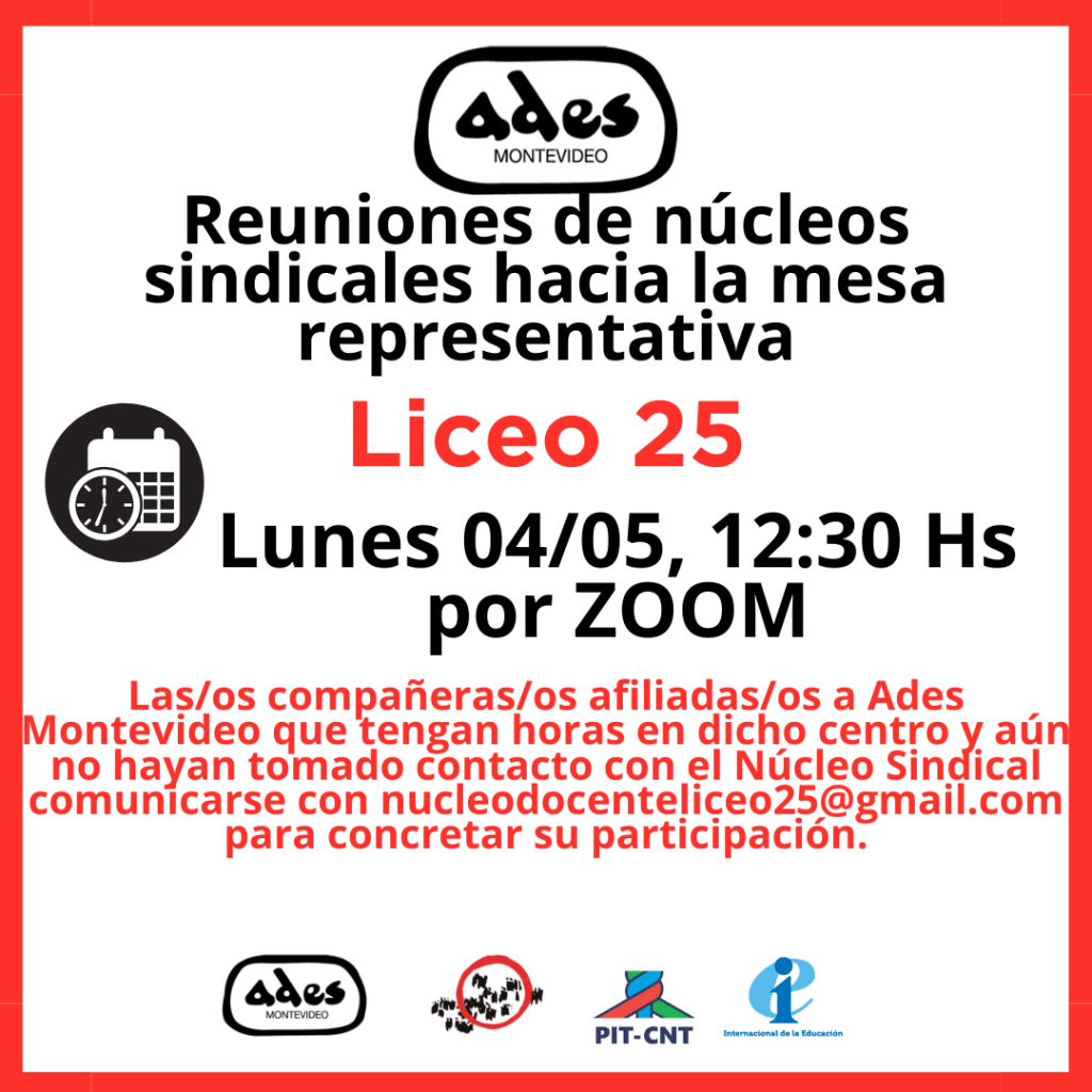 CONVOCTORIA A REUNIÓN DEL NÚCLEO DEL LICEO N° 25