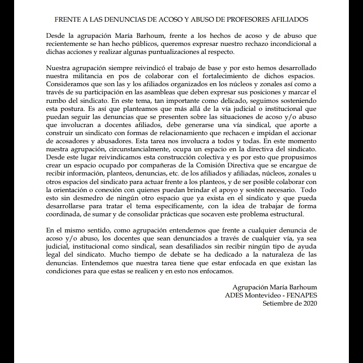 Declaración de la Agrupación María Barhoum