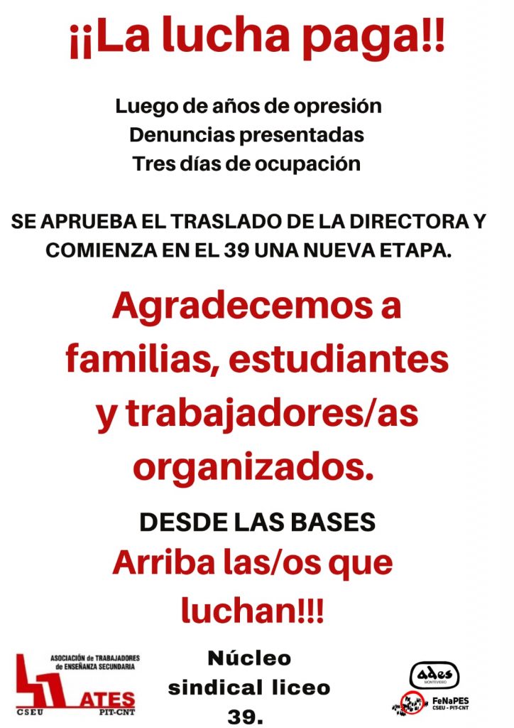 Núcleo sindical del Liceo N° 39