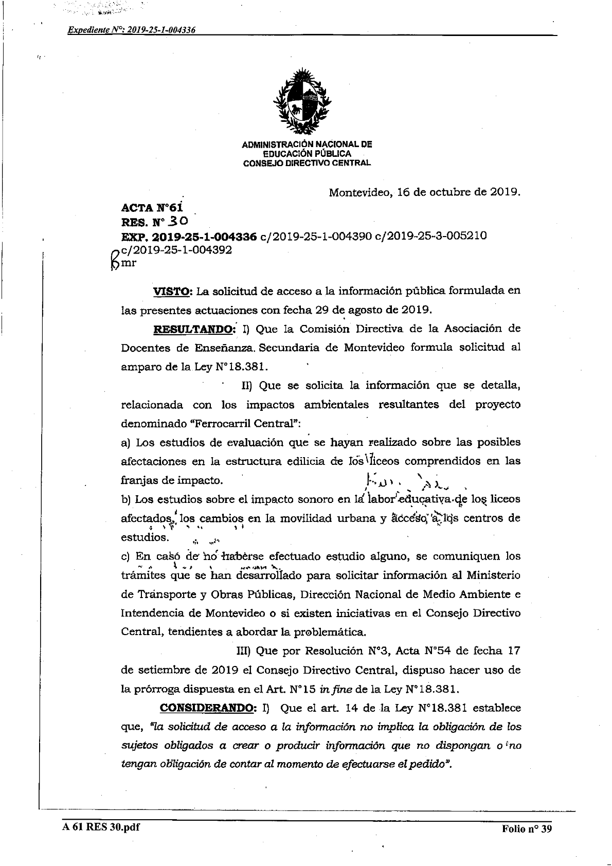 El CoDiCen de la ANEP reconoce no contar con información sobre el impacto del tren de UPM en los liceos próximos a la vía férrea