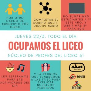 Jueves 22 de marzo el liceo 51 ocupa por cargo de adscripción, equipo multidisciplinario y cierre de las inscripciones en el liceo.