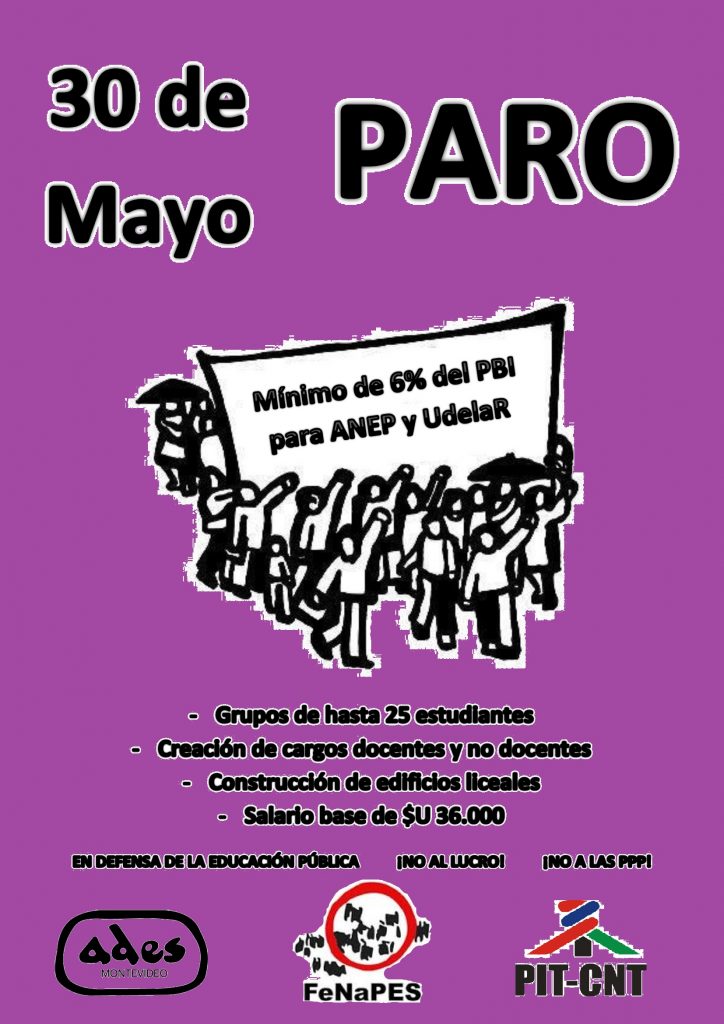 Martes 30 de mayo: Paro de ADES Montevideo en el marco de la FeNaPES. En Defensa de la Educación Pública