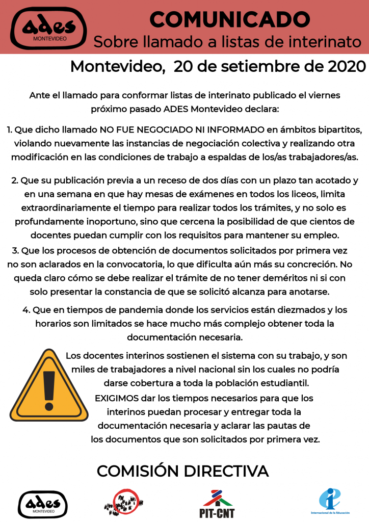 ??ATENCIÓN?? Sobre el llamado a conformar listas de interinato