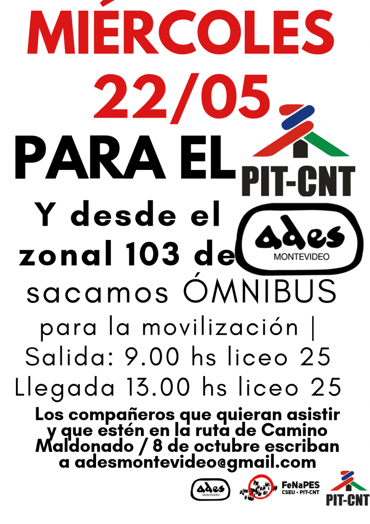 Zonal 103 de ADES Montevideo organiza transporte para la movilización en solidaridad con los compañeros de UAOEGAS